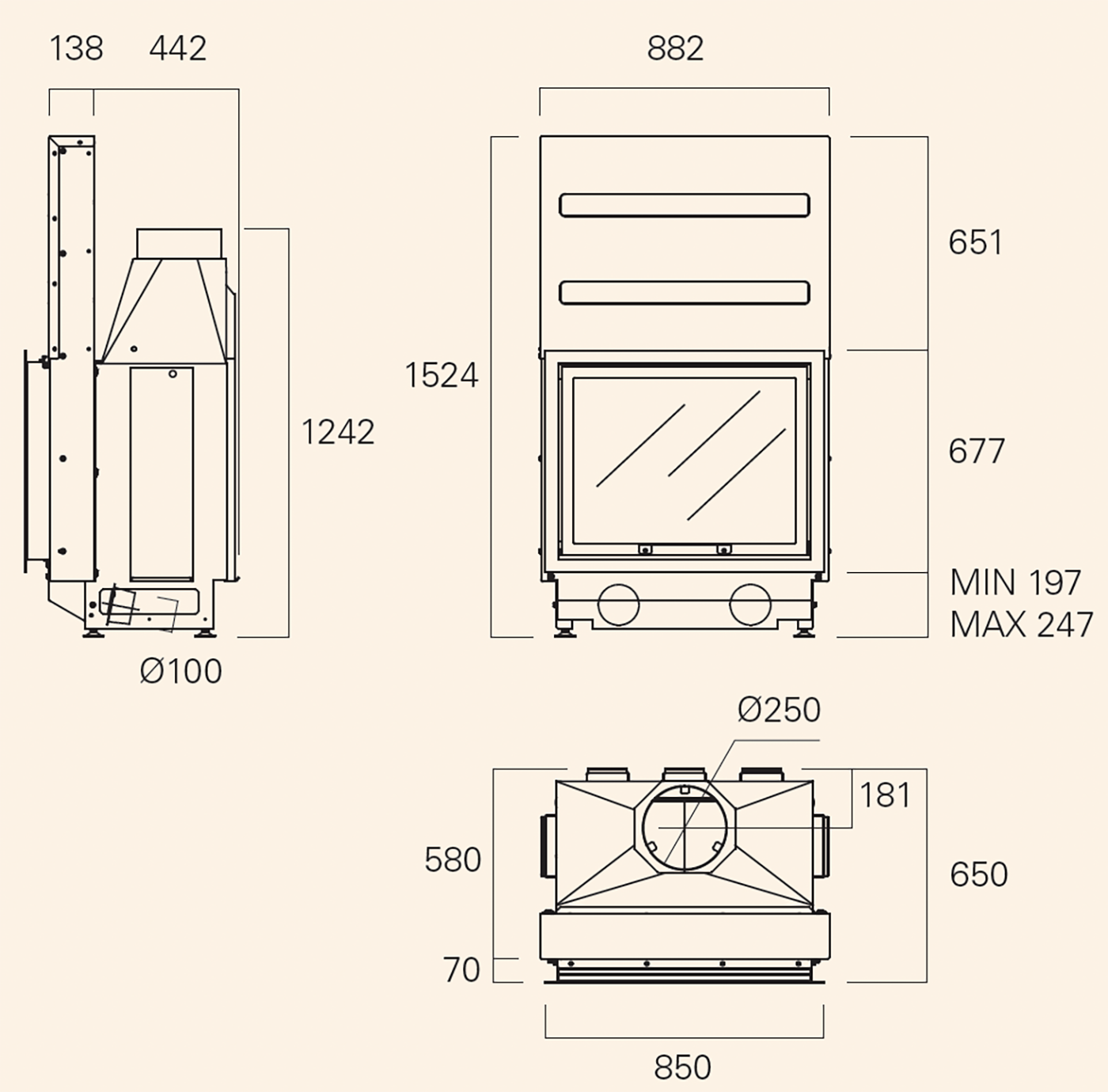 - Внутренняя часть из вермикулита с регулировкой первичного и вторичного воздуха.