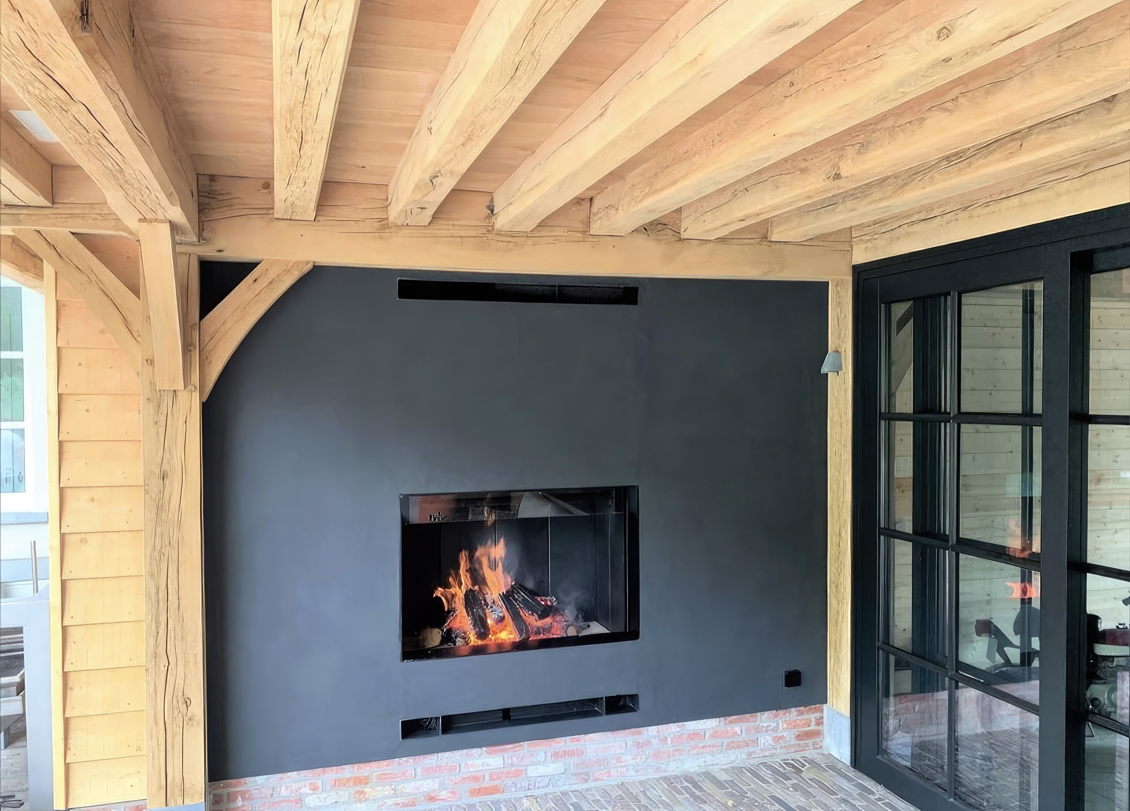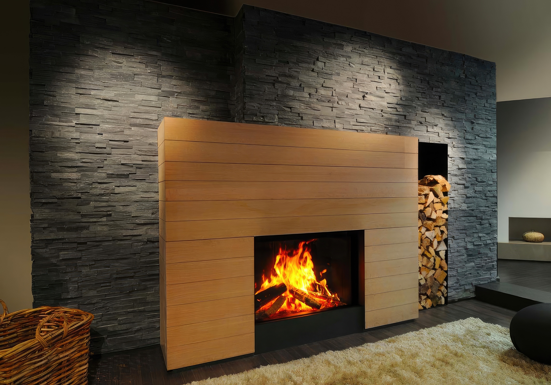 Стиль Pure Face: Минималистичный дизайн без видимых металлических рамок позволяет камину выглядеть как открытый арт-объект.