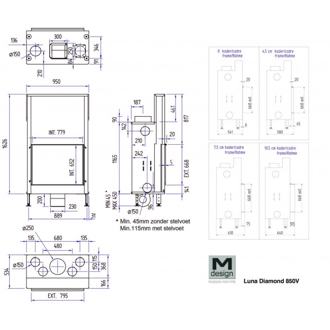 Каминная топка M-Design Luna 850 V Diamond Plus