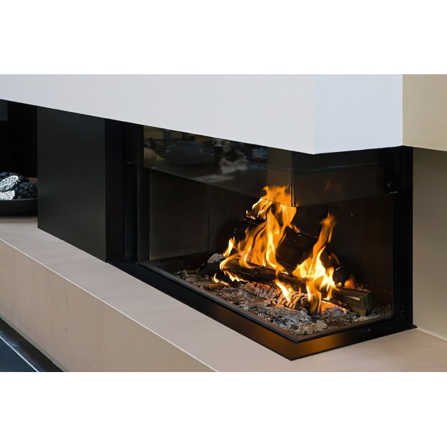 Если вы планируете купить каминную топку серии Diamond, вы выбираете премиальный комфорт. Модель оснащена бесшумным подъемным механизмом дверцы, который позволяет наслаждаться как закрытым, так и открытым пламенем. Отсутствие видимой рамы на стыке стекол делает конструкцию визуально легкой, превращая камин в стильное окно в мир тепла и спокойствия.