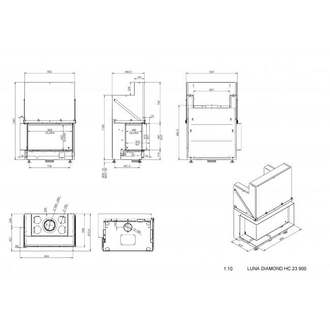 Каминная топка Luna 900 CL/CR Diamond