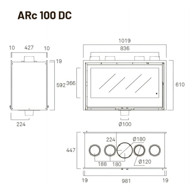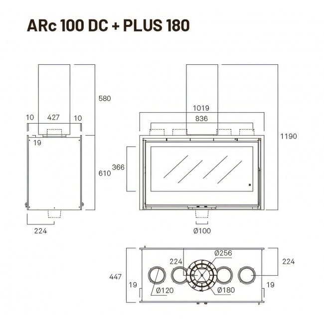 Каминная топка Rocal ARc 100 DC — это двусторонняя (туннельная) модель испанского производителя Rocal с шириной около 1 м, предназначенная для установки в перегородках и обогрева помещений до 300–450 м³ в Минске или других регионах Беларуси. Она работает на дровах, имеет стальной корпус с футеровкой из вермикулита, сквозное прямое остекление и боковое открывание двери (реверсивное, влево/вправо).