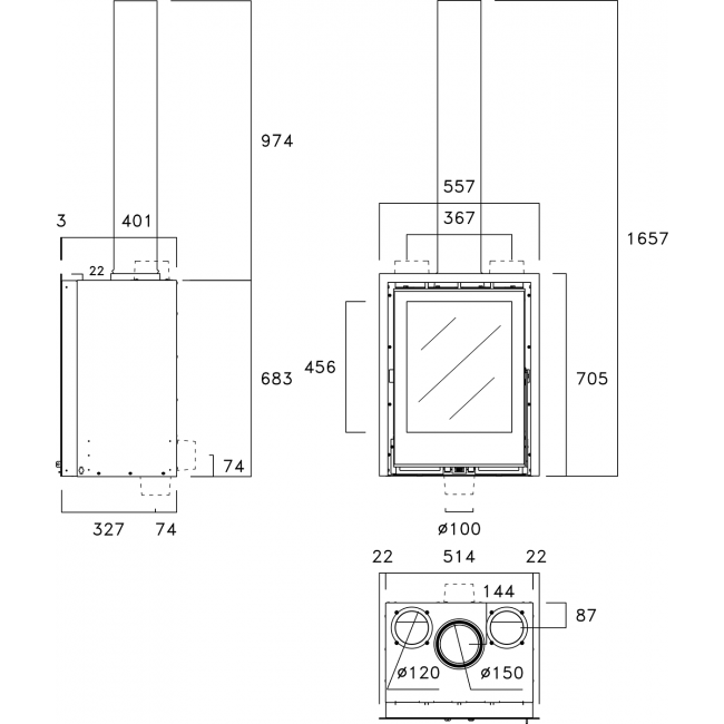 | Диаметр дымохода | 150 мм |