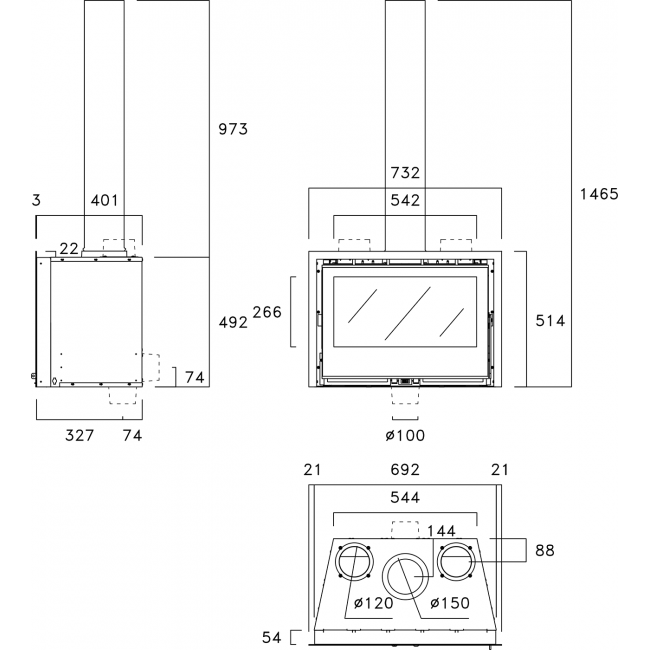 | Высота | 514 мм- без трубы 1465 мм - с трубой |