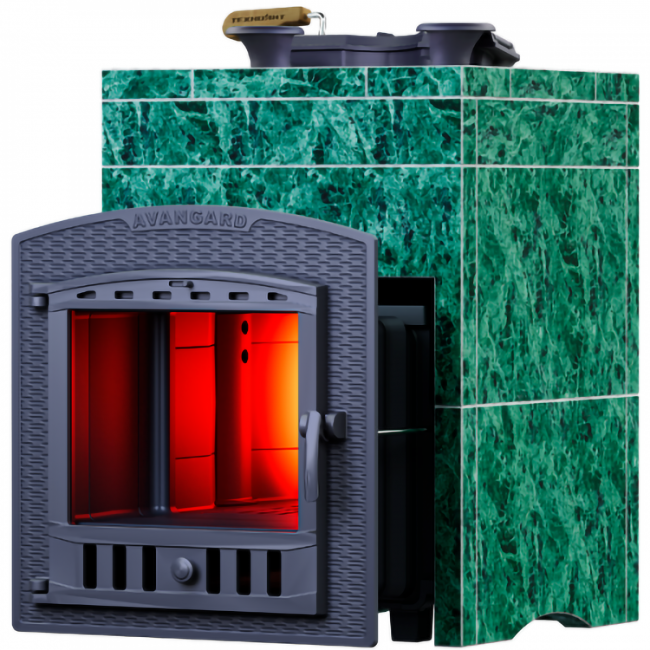 Основным парообразователем в печи Авангард является каменка прямого нагрева. С нижней стороны выполнены полые выступы, которые со всех сторон охватываются пламенем, а с верхней стороны они образуют воронки. Попадая в воронки – вода оказывается в самом раскаленном месте заряда образуя легкий мелкодисперсный пар уже через 30 мин после растопки.