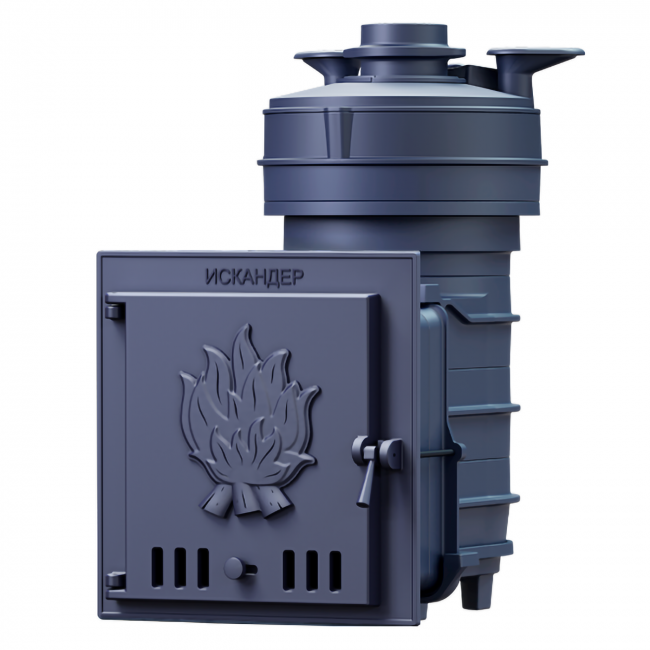 Печь Искандер получила от старших моделей парообразователь прямого нагрева - чугунную каменку имеющую существенную толщину и массу для аккумуляции тепла. Нагреваясь свыше 600С она эффективно нагревает дополнительный заряд, и при попадании воды даёт лёгкий мелкодисперсный пар. Расположенные снизу теплосъёмные шипы ускоряют нагрев парообразователя.