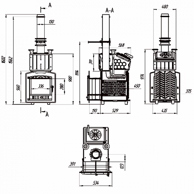 | Диаметр подключения дымохода | 130 мм |