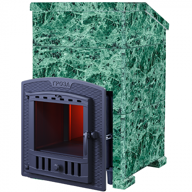 Комплект Гроза 24(П2) Президент в змеевике создаст подходящий климат для вашей бани. Чугунные банные печи ТМ «Гроза» — это современные печи, рассчитанные на малые и средние размеры парных. Печь имеет прочную сборную конструкцию, без резьбовых и сварных соединений, детали выполнены из легированного чугуна. Топка печей «Гроза» состоит из двух камер, разделенных пламегасителем. Радиаторные выступы каменки, направленные вглубь топки, увеличивают площадь контакта огня с каменкой и эффективность теплосъема. Для увеличения площади поверхности нагрева камней каменка снаружи оборудована чугунными шипами, направленными вверх. Между шипами укладываются банные камни или дополнительные чугунные заклады, такие как ядра и чугунные шишки. Сами чугунные шипы также являются частью заряда для лучшего испарения воды.