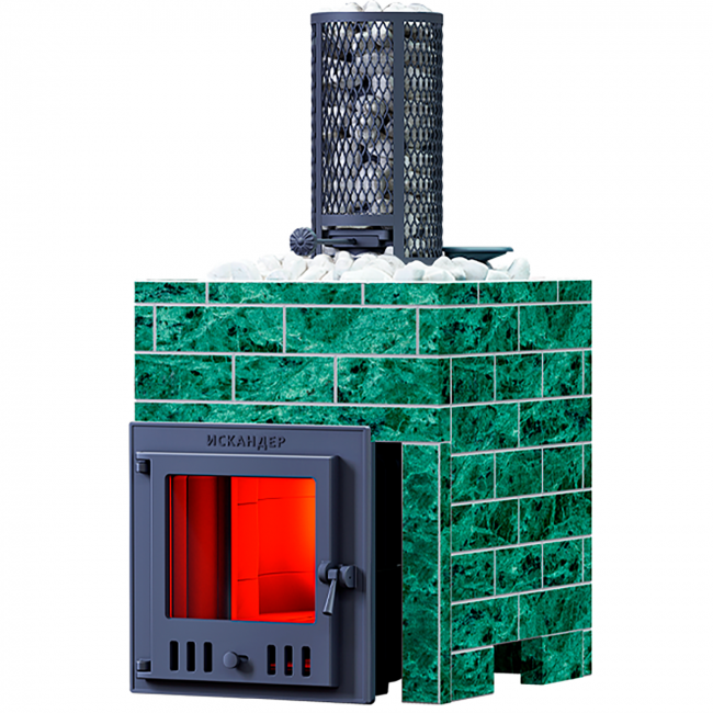 Печь Искандер получила от старших моделей парообразователь прямого нагрева - чугунную каменку имеющую существенную толщину и массу для аккумуляции тепла. Нагреваясь свыше 600С она эффективно нагревает дополнительный заряд, и при попадании воды даёт лёгкий мелкодисперсный пар. Расположенные снизу теплосъёмные шипы ускоряют нагрев парообразователя.