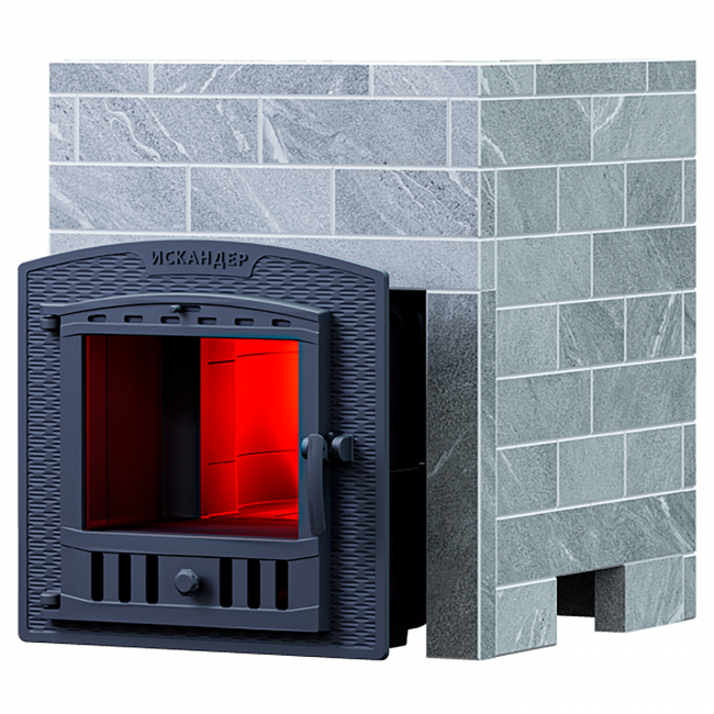 Печь Искандер получила от старших моделей парообразователь прямого нагрева - чугунную каменку имеющую существенную толщину и массу для аккумуляции тепла. Нагреваясь свыше 600С она эффективно нагревает дополнительный заряд, и при попадании воды даёт лёгкий мелкодисперсный пар. Расположенные снизу теплосъёмные шипы ускоряют нагрев парообразователя.