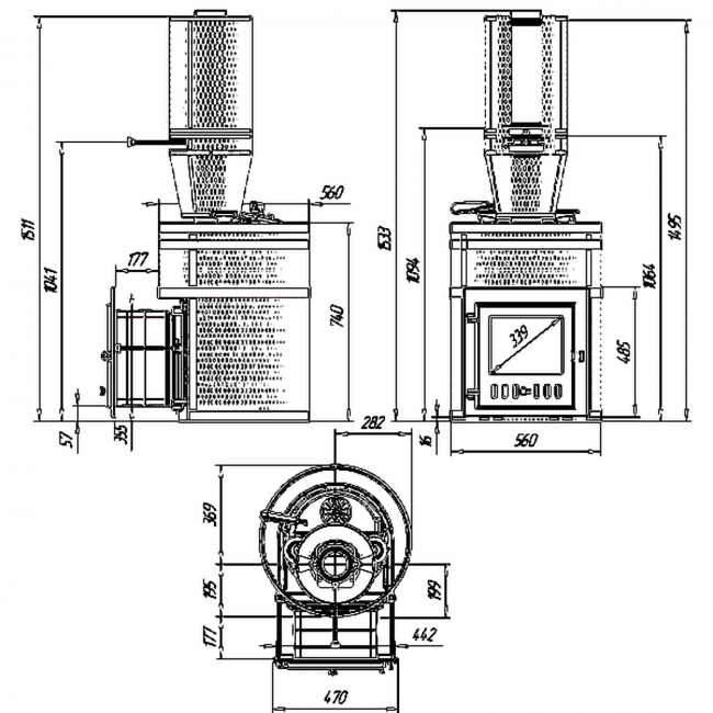 Печь полностью изготовлена из чугуна