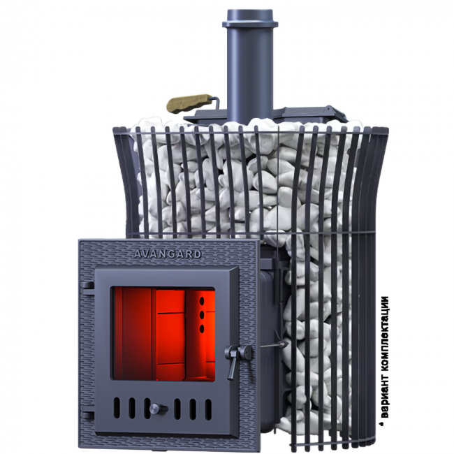 Масса пароиспарителя в печи AVANGARD 51 кг, и он нагревается прямым контактом с пламенем. У пароиспарителя 2 поверхности с увеличенной рабочей площадью – снизу идёт нагрев огнём, а сверху поддаётся вода для пара. У печи уникальная, массивная каменка с теплонакопительными воронками, для получения легкого пара.