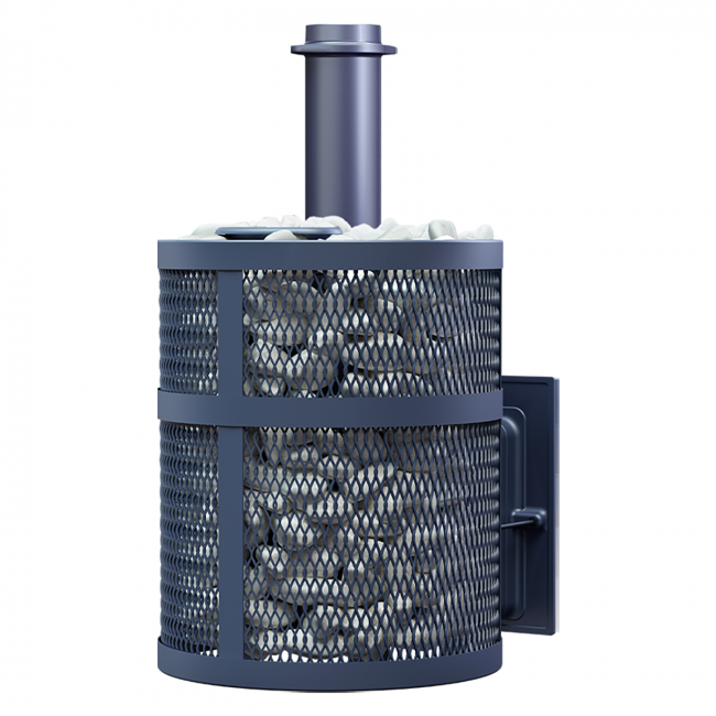 Чугунная банная печь с прямым нагревом парообразователя. Печь со стенками толщиной 16 миллиметров быстро нагревает воздух в парной и производит качественный мелкодисперсный пар за счёт теплоёмкой каменки, оснащённой теплосъёмными шипами на нижней поверхности.
