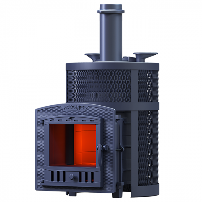 Модификация "Искандер ЗК" - это печь "Искандер" с закрытой каменкой, двумя паровыми пушками и дверцей для залповой подачи пара.