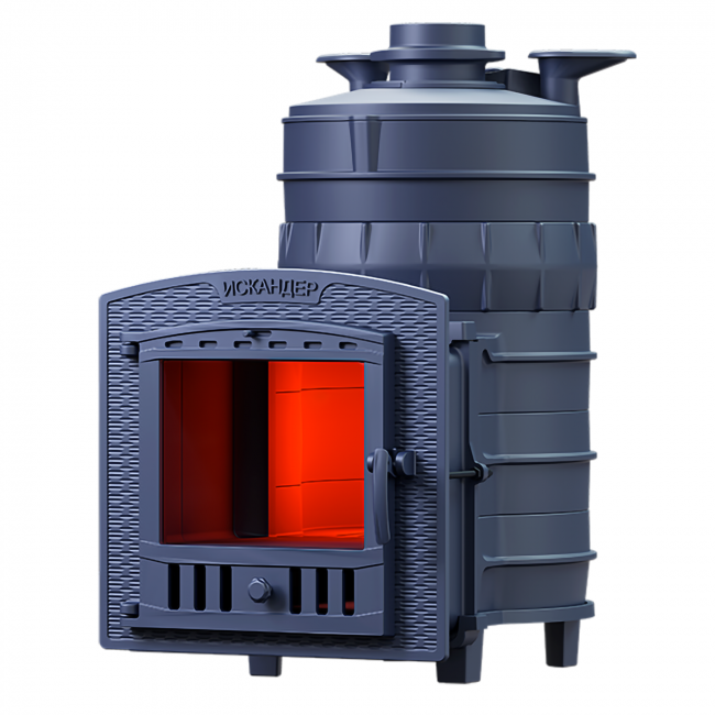 Печь Искандер получила от старших моделей парообразователь прямого нагрева - чугунную каменку имеющую существенную толщину и массу для аккумуляции тепла. Нагреваясь свыше 600С она эффективно нагревает дополнительный заряд, и при попадании воды даёт лёгкий мелкодисперсный пар. Расположенные снизу теплосъёмные шипы ускоряют нагрев парообразователя.