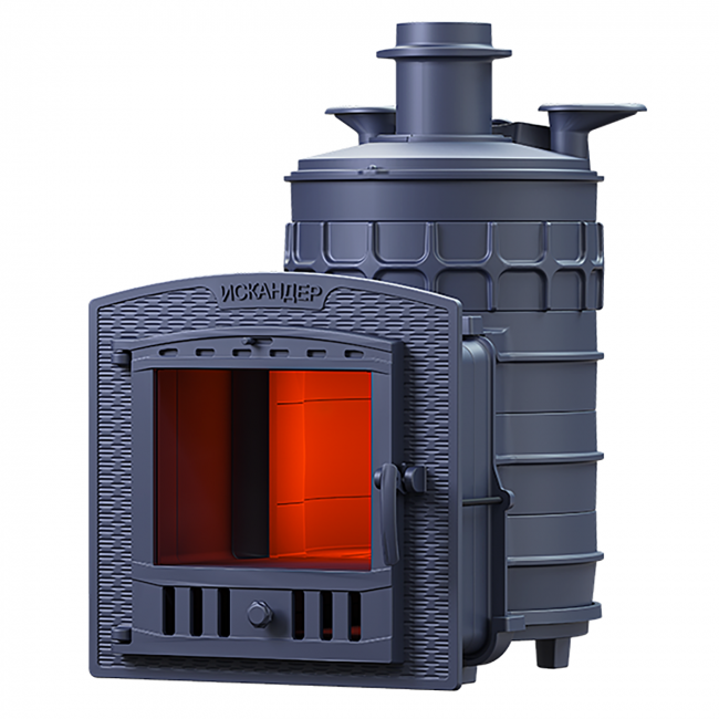 Искандер 25 - чугунная банная печь с прямым нагревом парообразователя. Печь со стенками толщиной 14 мм. Быстро нагревает воздух в парной и производит качественный мелкодисперсный пар за счёт теплоёмкой каменки, оснащённой теплосъёмными шипами на нижней поверхности.