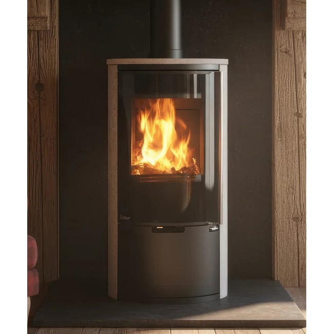 Внутренняя облицовка из вермикулита высокой плотности защищает стальной корпус и способствует самоочистке стекла за счет высокой температуры в камере. В нижней части печи расположена открытая дровница, которая не только удобна в эксплуатации, но и дополняет уютный образ дровяного камина.