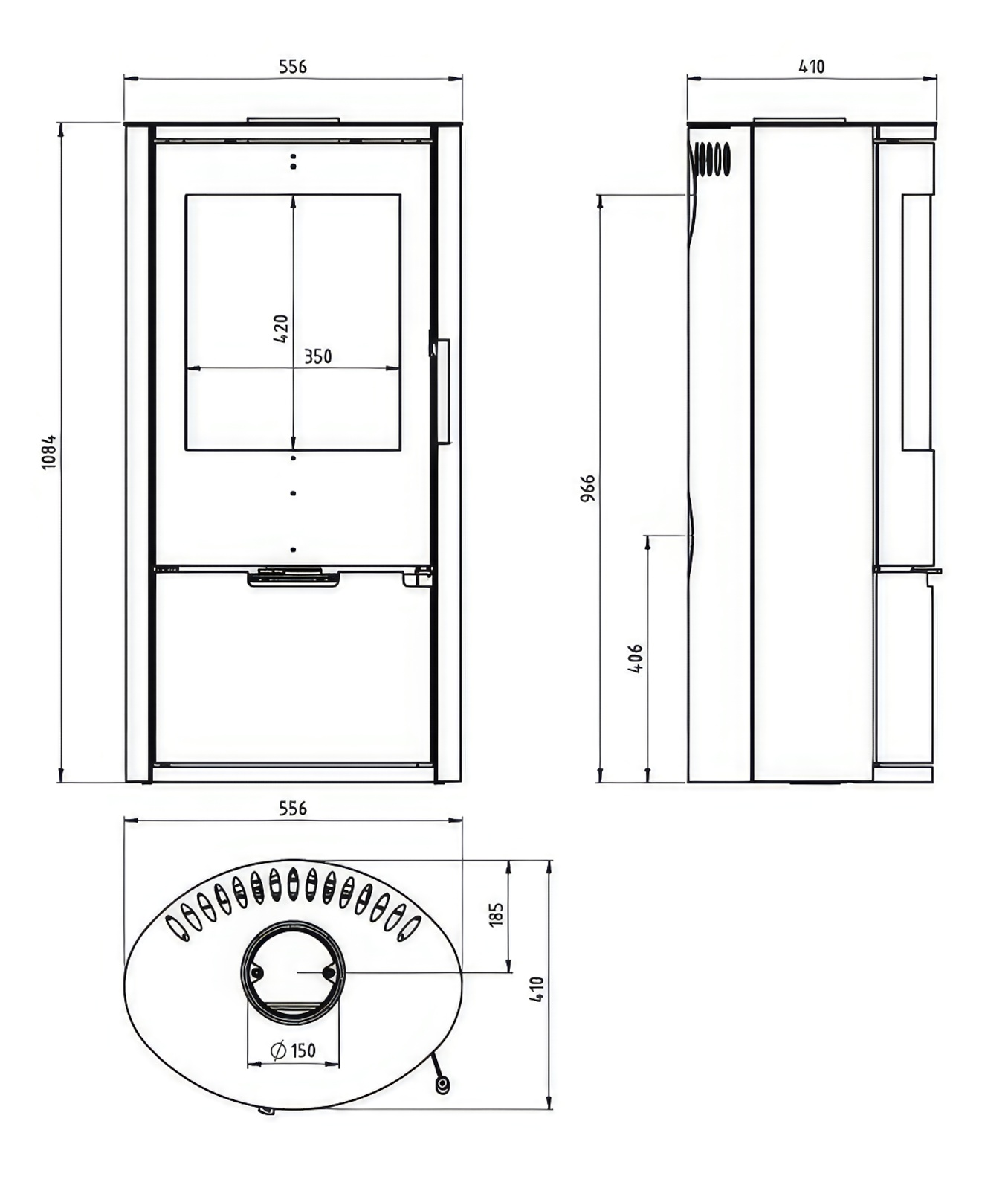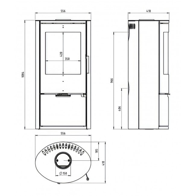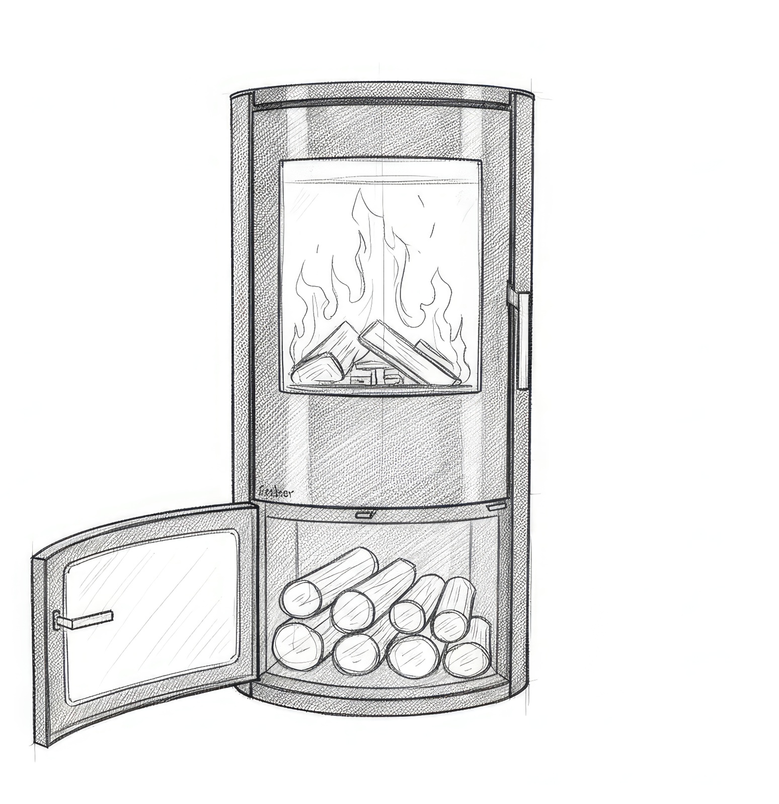 - Ниша для дров: В нижней части корпуса предусмотрено открытое отделение для хранения и просушки дров, что добавляет практичности и уюта.
