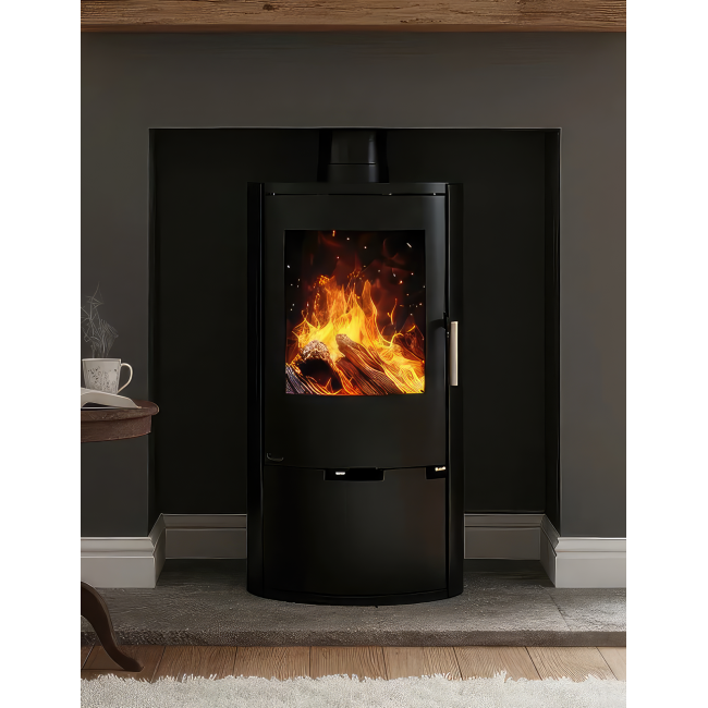 Корпус выполнен из котловой стали с термостойким покрытием. Топка футерована вермикулитом высокой плотности, что обеспечивает чистое сгорание и защищает сталь от прямого воздействия огня. Модель поддерживает подключение внешнего воздуха (CPV), что критически важно для домов с принудительной вентиляцией или высокой герметичностью.