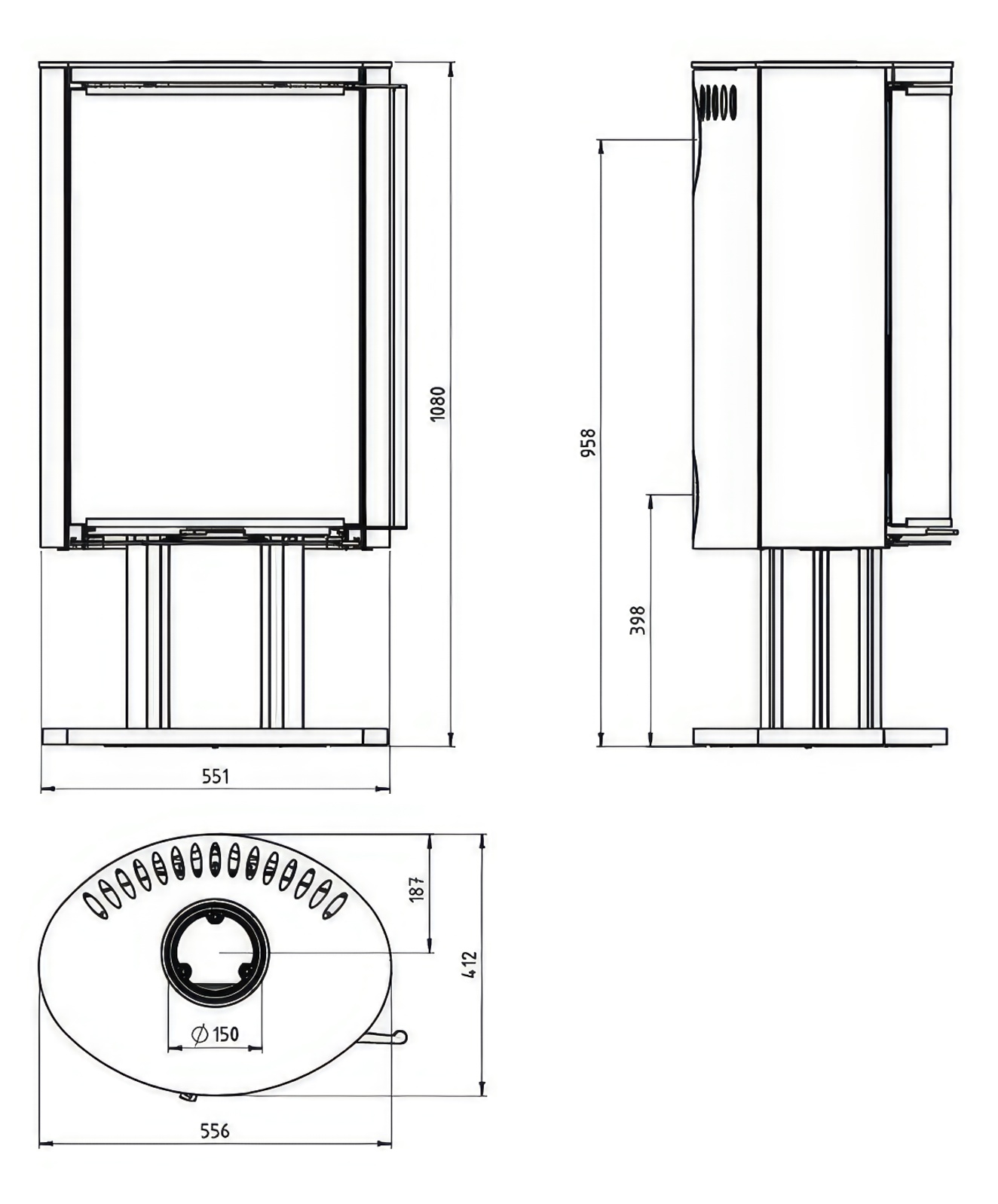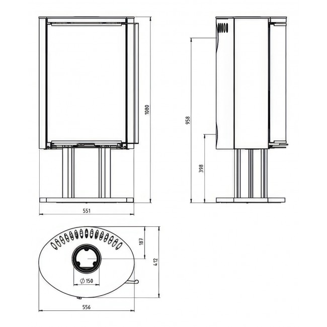 • Диаметр дымохода 150 мм