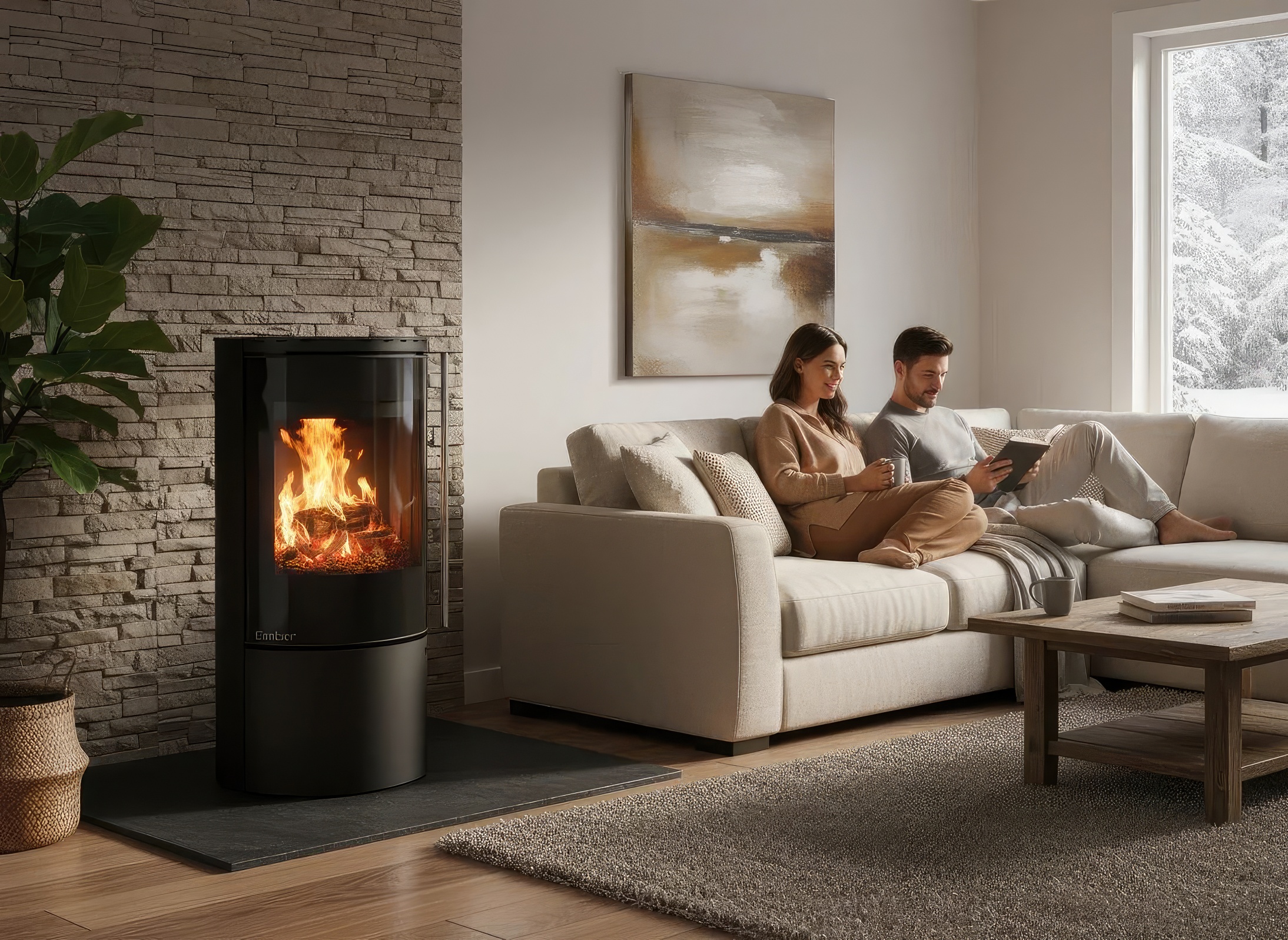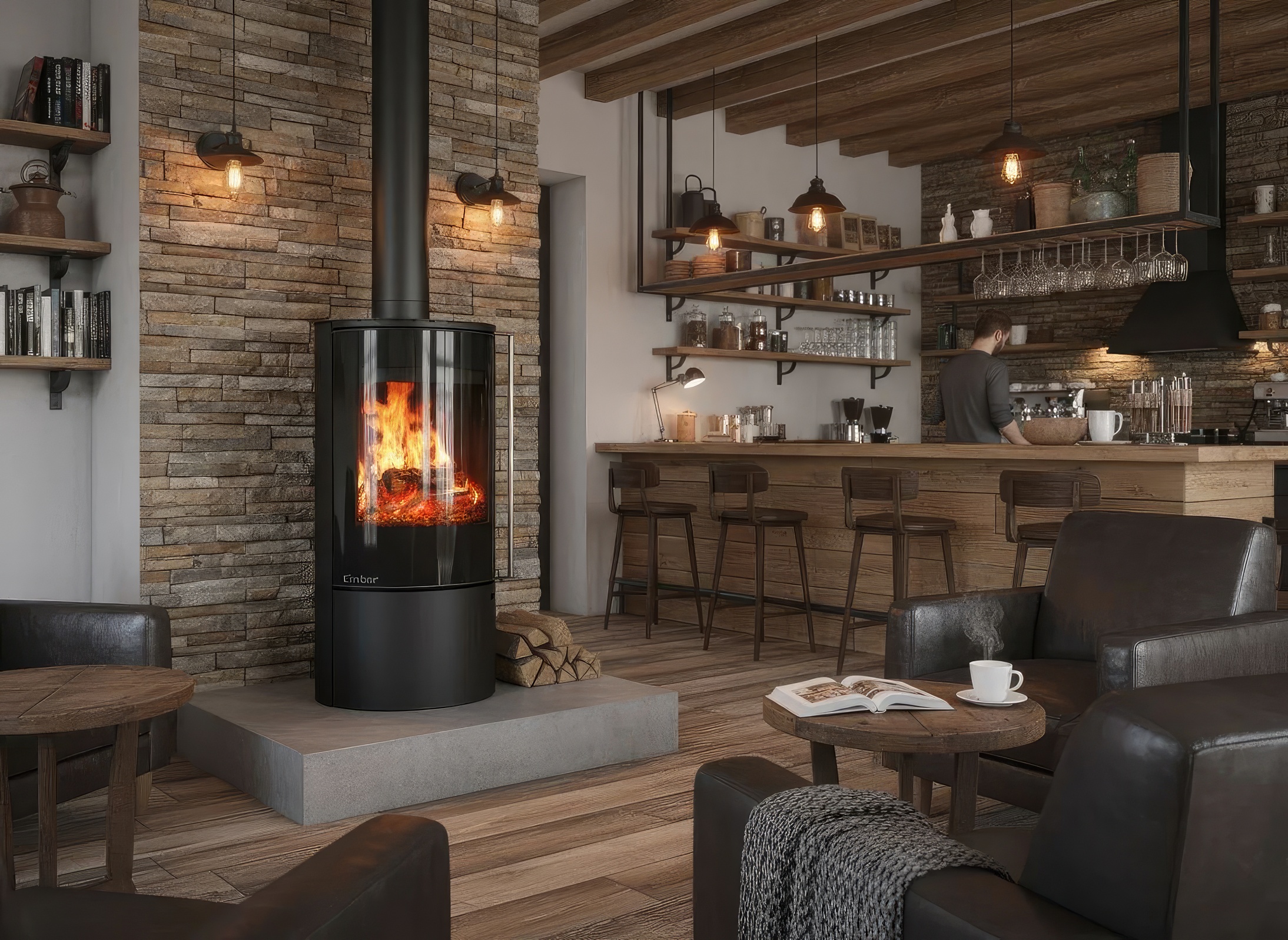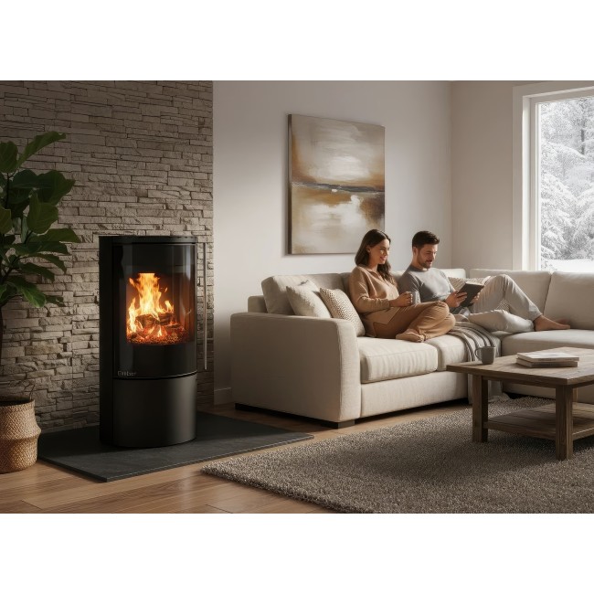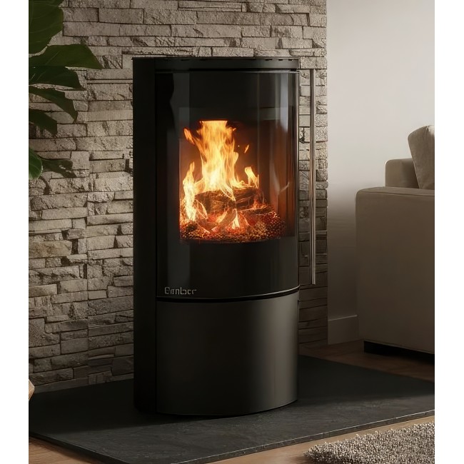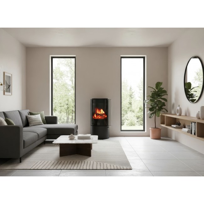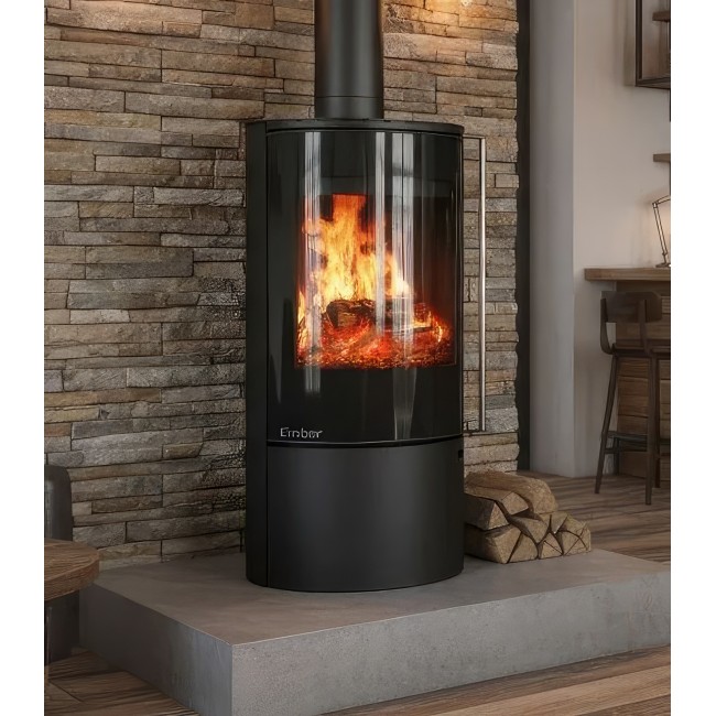 Печь-камин Ember F14 FG — это флагман дизайнерской линейки Ember. Модель установлена на стройную центральную стойку, что при ее внушительной высоте создает уникальный визуальный контраст между мощным стальным корпусом и легкостью основания. Это идеальное решение для просторных залов, лофтов и студий с современным ремонтом.