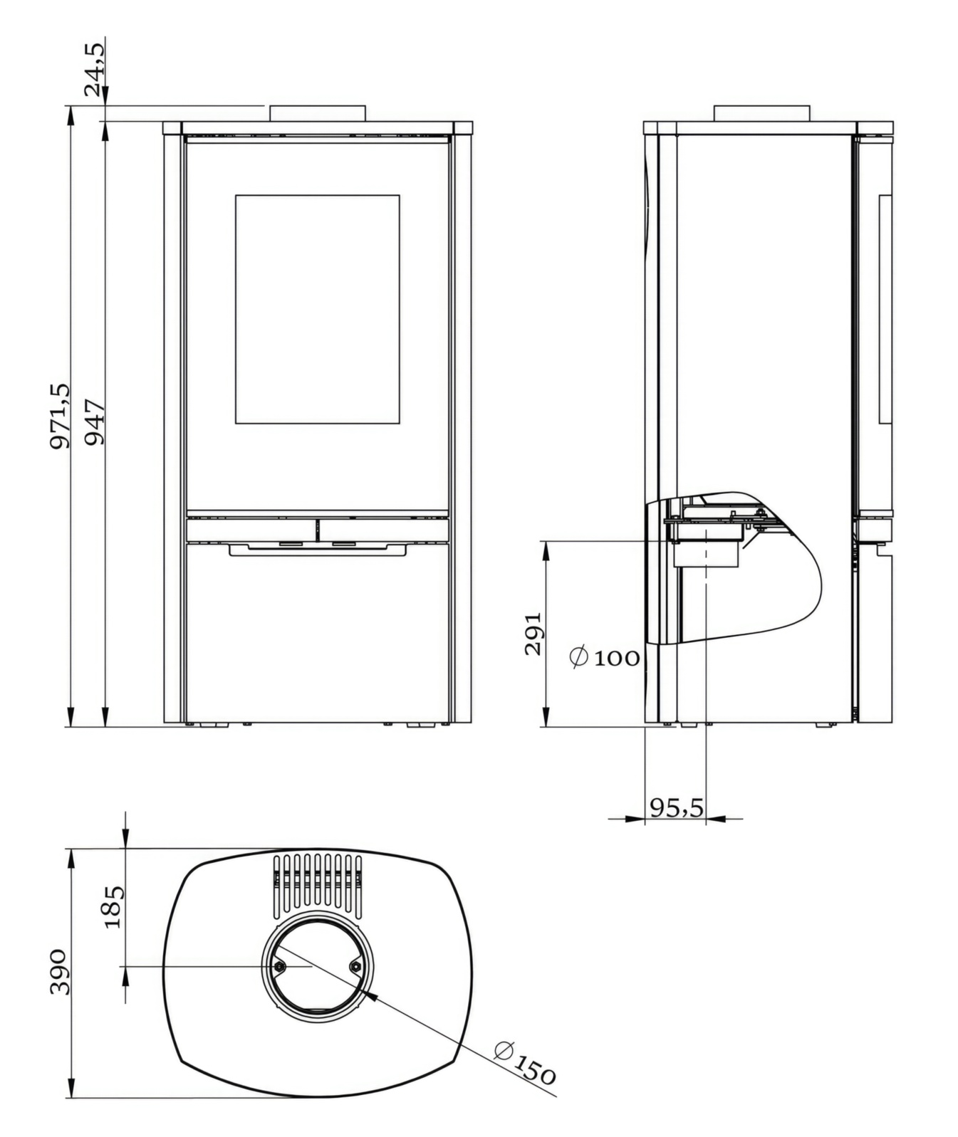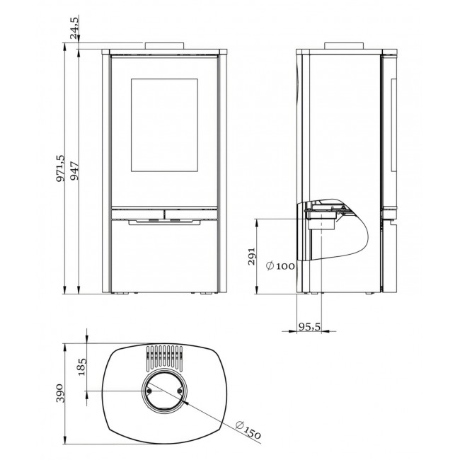 - Диаметр дымохода 150 мм