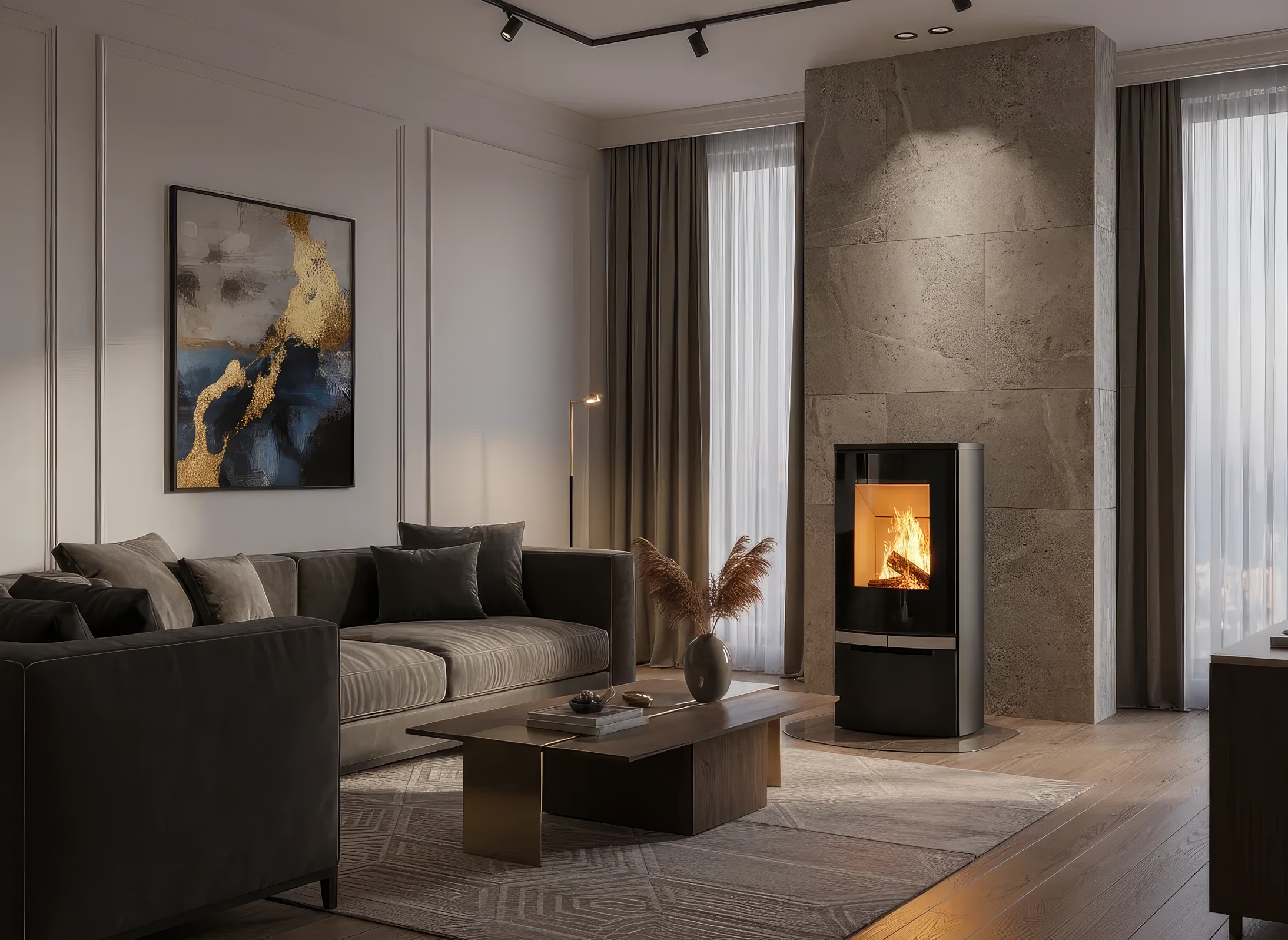 Печь-камин Ember U2 FG — это флагманская модель для тех, кто ищет максимальный визуальный эффект. Благодаря Г-образному стеклу без рамы на стыке, создается иллюзия открытого огня. Эта печь идеально подходит для установки в углу помещения или для зонирования пространства, позволяя любоваться пламенем с двух разных ракурсов одновременно.