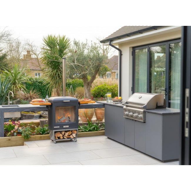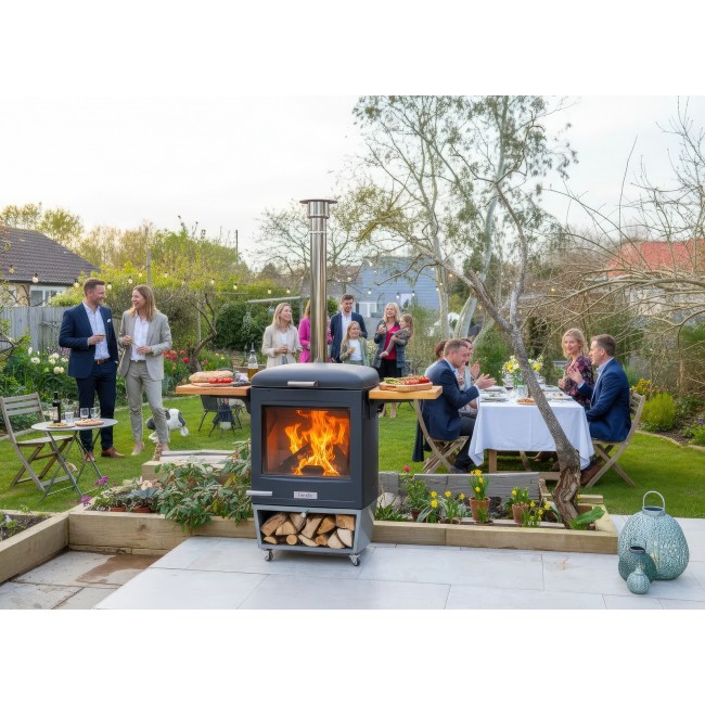 Это многофункциональная уличная печь, которая сочетает в себе камин для сада и полноценный гриль. Идеальное решение для террасы, двора или зоны барбекю, позволяющее не только наслаждаться живым огнем, но и готовить блюда на открытом огне.