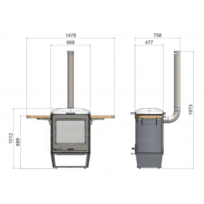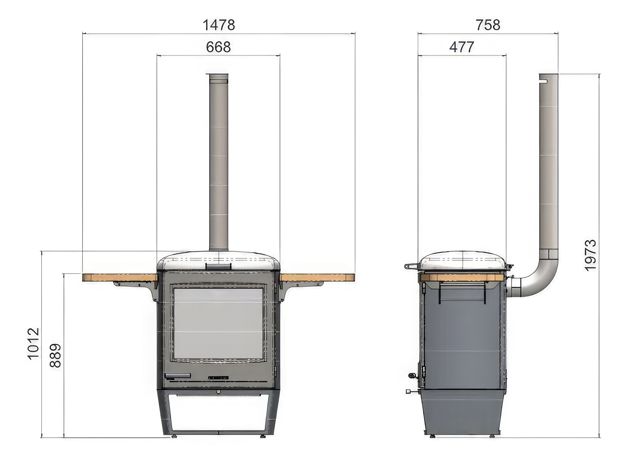 - Деревянные боковые полки: удобная рабочая поверхность для подготовки продуктов и размещения аксессуаров (съёмные и регулируемые)