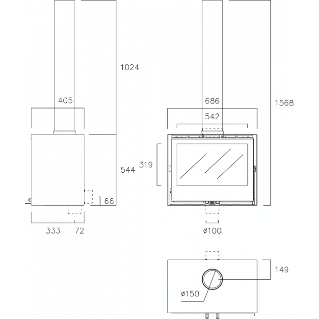 | Высота | <p>544 мм - без трубы; </p><p>1568 мм - с трубой</p> |