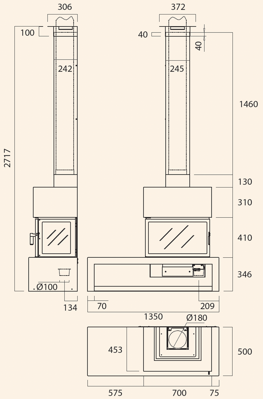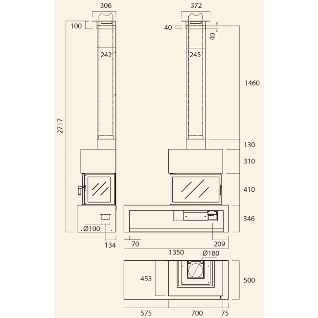 | Диаметр дымохода | 180 мм |