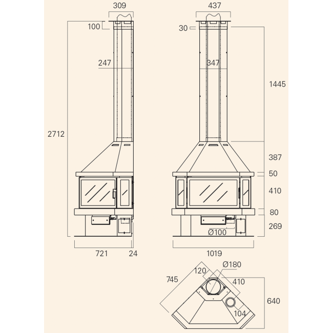 | Диаметр дымохода | 180 мм |
