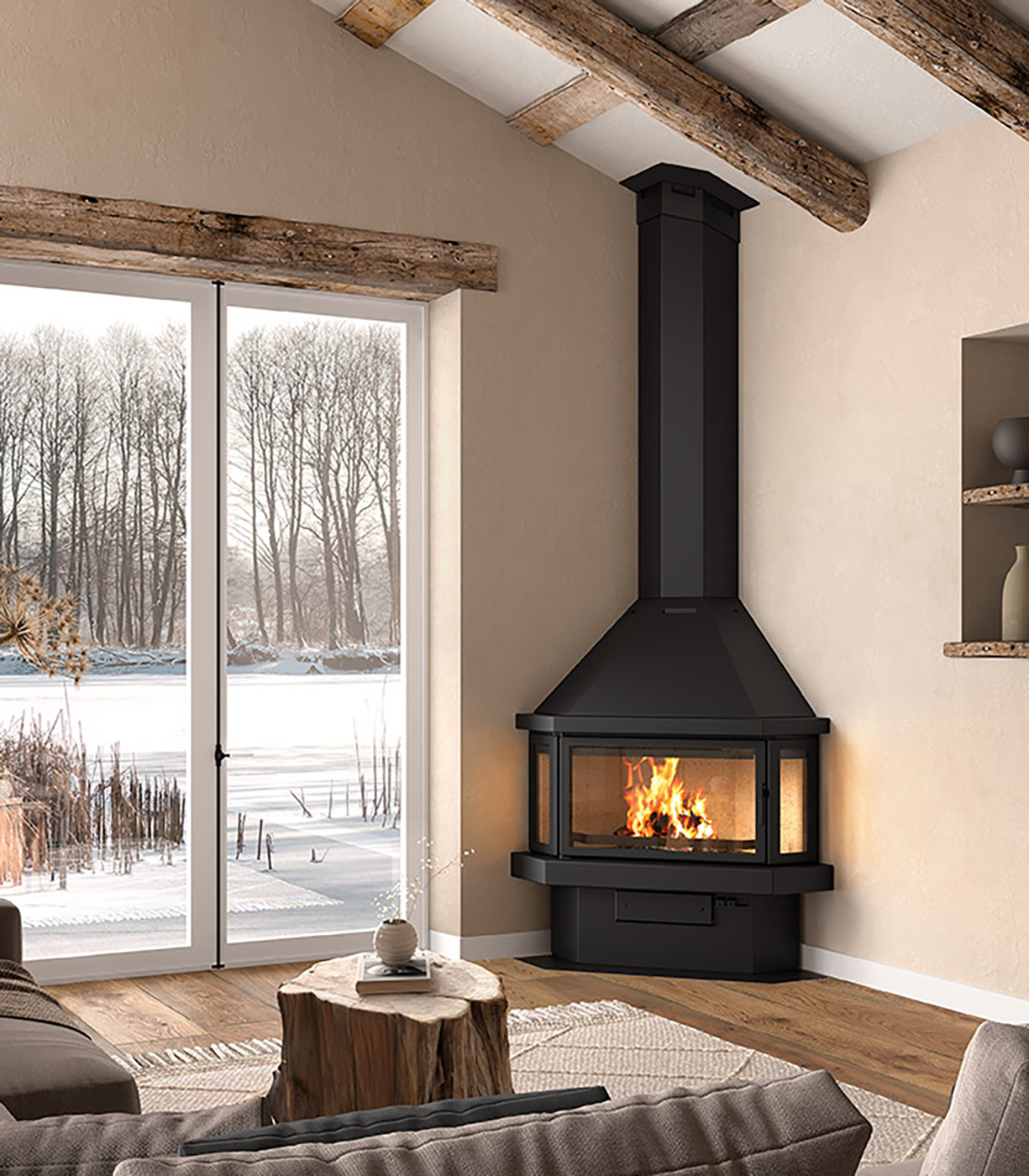 Печь камин LL Calor LL-25 B — традиционный фронтальный камин с вытяжкой традиционного дизайна, изготовлен из стального листа и оснащен стеклокерамическим стеклом, устойчивым к температуре до 750 ºC. Он покрыт термостойкой краской и покрыт вермикулитовыми панелями для большей долговечности.
