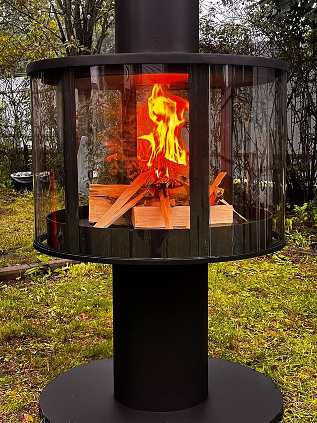 - Уличный (островной) камин VV с диаметром основания 76 см и высотой изделия 260 см.