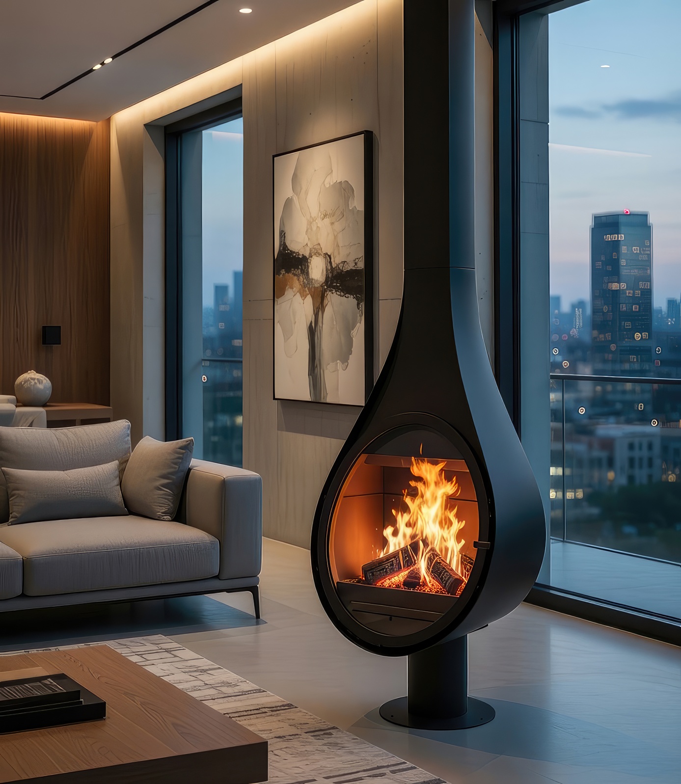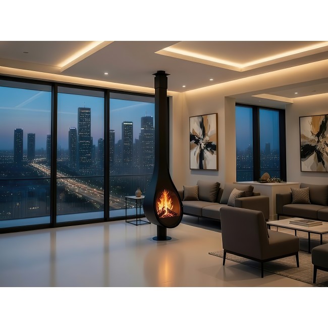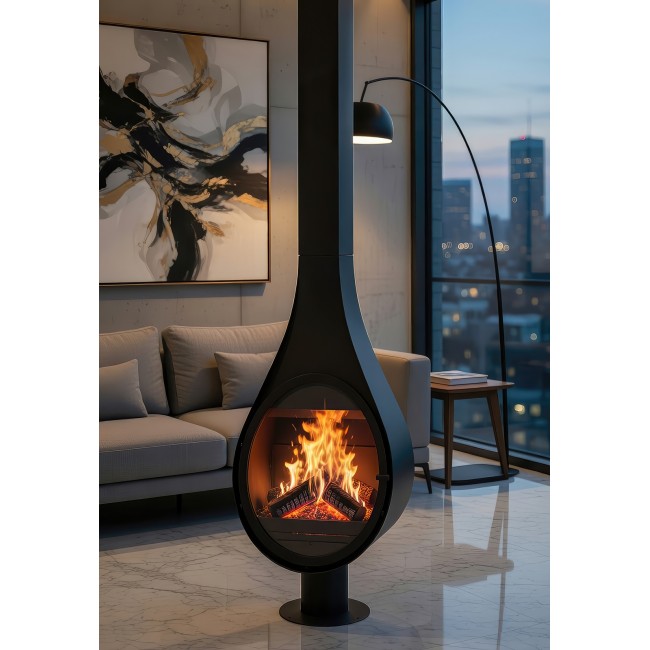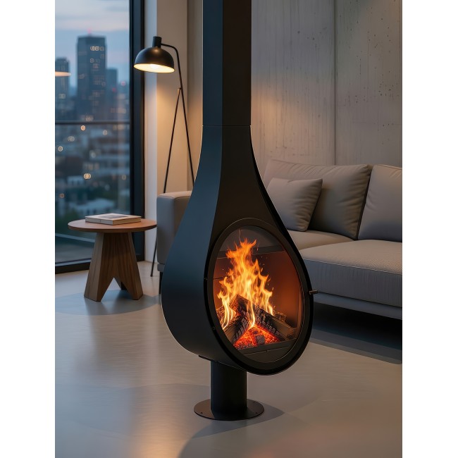 Готовый стальной камин ROCAL Drop (N) на ноге испанского производства с призматическим стеклом - это элегантное и стильное решение для современного интерьера. Чистые и простые линии в сочетании с материалами высочайшего качества делают такой камин не только красивым заверщающим штрихом в обстановке, но и надежным, долговечным источником тепла и уюта.